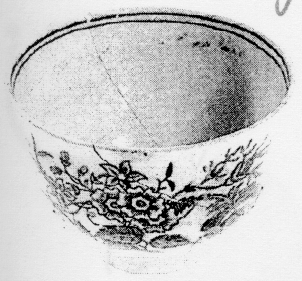 | 5c decoratie | uitwendig: Chinese roos met vlinders en bloem in blauw blauw |