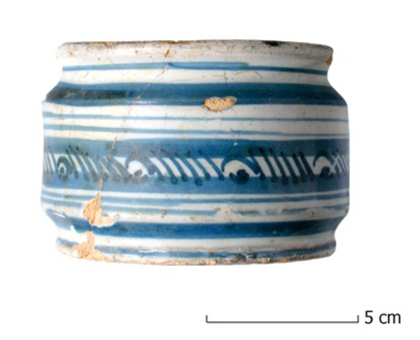| 4b | brede zalfpot met (vrijwel) cilindrische buik, ingesnoerde bodem en hals met uitgebogen rand, standvlak |