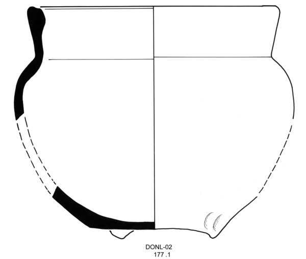 | 4b | bolle pot met uitstaande wijde hals, aan binnenzijde verdikte rand, lobvoeten |