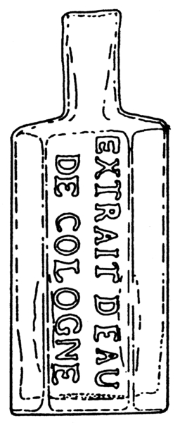 | 5c decoratie | opschrift in reliëf: 'extrait deau de cologne' |