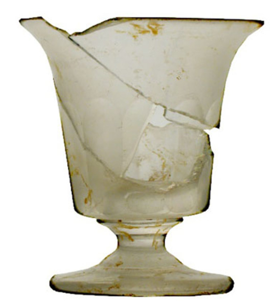 | 4b | conisch kelkglas met dikwandige afgeronde bodem en uitstaande lip en verticale afgeronde facetten, massieve korte stam, dikwandige schijfvormige voet |