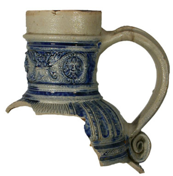 | 5c | op hals: fries met drie maskerons afgewisseld door twee gepaarde griffioenen; op buik: kerfsnee decoratie; gedateerd:(15)95 blauw |