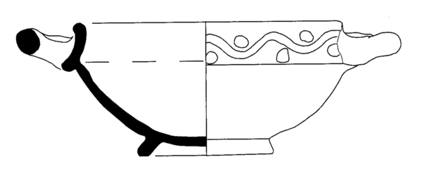 | 5c decoratie | uitwendig op rand: ringeloordecoratie (slingerlijn met stippen |