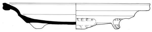 | 4b vorm | bord met uitgebogen vlag en sterk verdikte en van buiten aangedrukte rand, lobvoeten |