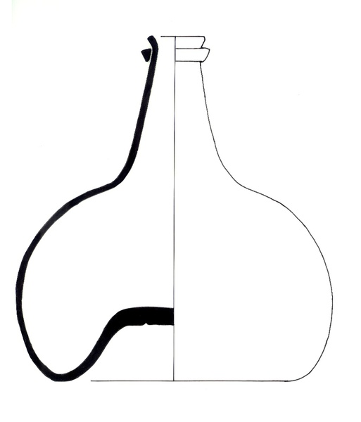 | 4b | bolvormige wijnfles met licht uitstaande lip en V-vormige of afgeronde draad om de lip, opgestoken bodem met pontilmerk |