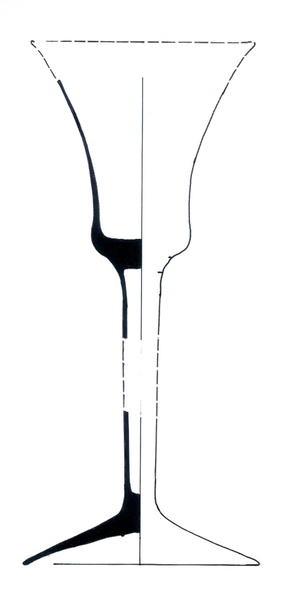 | 4b vorm | dikwandig klokvormig kelkglas met dikwandige bodem, rechte stam, voet met pontilmerk, diverse sieruitvoeringen van stam |
