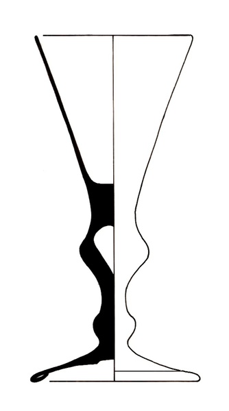 | 4b vorm | trechter- of peervormig kelkglas met dikwandige bodem, ook met luchtbel, massieve paddestoelvormige- of biconische stam, ook met nodus, ook met luchtbel, voet met pontilmerk |
