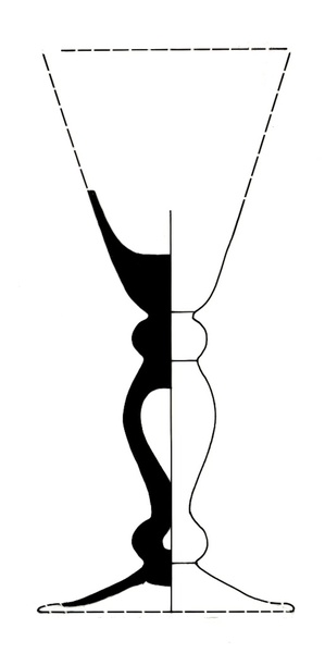 | 4b vorm | conisch kelkglas met afgeronde bodem, holle of (deels) massieve balusterstam, ook met meer geledingen, schijfvormige voet met pontilmerk |