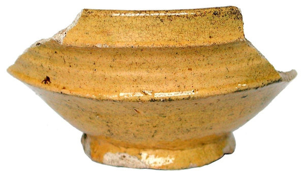 | 4b | diepe bolle kom met ribbel op buik en kraagrand, standring |