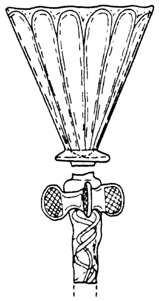 | 4b | trechtervormig kelkglas met ribbelpatroon, rechte stam met spiraalvormige draadversiering en bovenaan vier vleugeltjes, schijfvormige voet met pontilmerk |