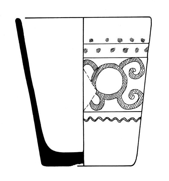 | 4b | dikwandige conische beker, ook met radgravure, verdikte bodem, standvlak met (eventueel weggeslepen) pontilmerk |