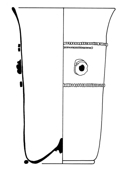 | 4b | cilindrische of lichtconische beker met uitstaande lip, met twee horizontale geribde draden, opgestoken bodem met pontilmerk, voetring |