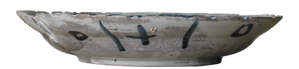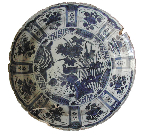 | 5c | imitatie kraakporselein, spiegel: vogel op boomstronk in landschap; vlag: acht brede en acht smalle perken met Chinese symbolen; onderzijde vlag: acht vakken met afwisselend cirkels en kruizen blauw |