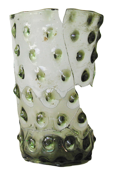 | 4b | cilindrische of licht conische beker met rechte lip met knobbelpatroon in reliëf, opgestoken bodem met pontilmerk, voetring |