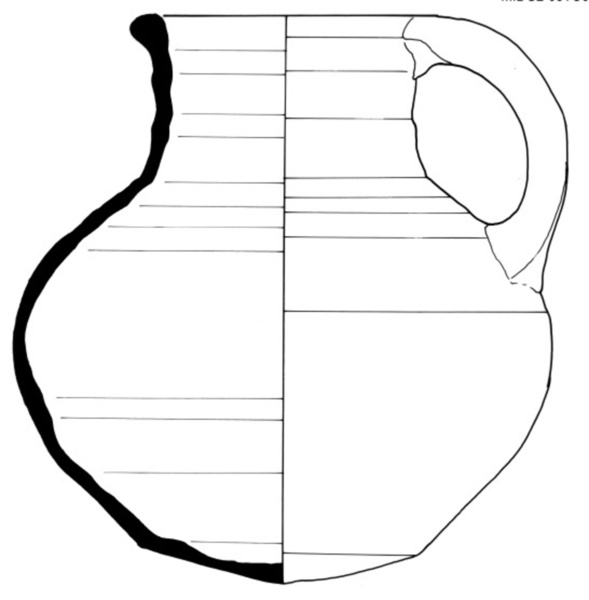 | 4b | bolle kan met cilindrische hals met ribbel, verdikte rand, lensbodem |