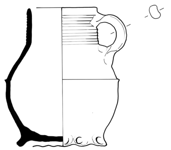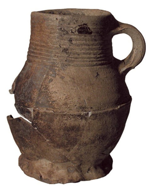 | 4b | biconische kan met buikknik met ribbel en hoge hals met rechte rand, op standring |