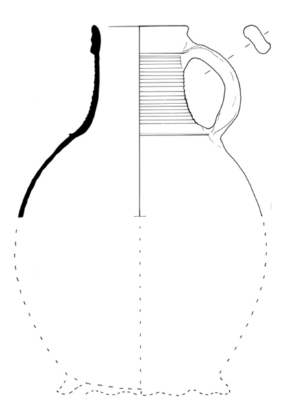 | 4b | bolle kan met cilindrische hals en kraagrand, ribbel op halsaanzet, op standring |