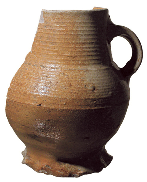 | 4b | biconische kan met buikknik met ribbel en hoge hals met rechte rand, standring |
