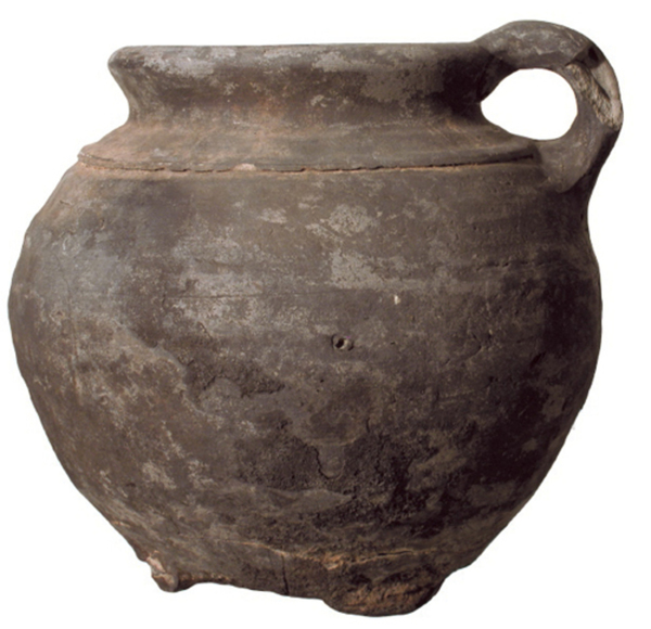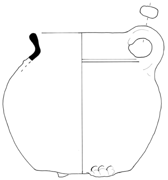 | 4b | bolle grape met licht uitstaande hals en afgeronde rand, ribbel op schouder, lobvoeten |