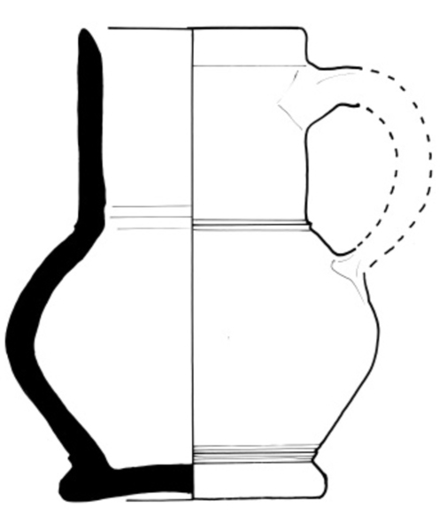 | 4b vorm | kan met afgeronde buikknik en iets toelopende hals met ribbel op halsaanzet en groef onderlangs rand, standvoet |