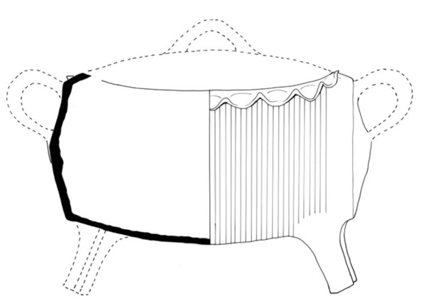 | 4b | grote tonvormige pot met bijpassend deksel dat na het draaien uit de potwand is geneden, op vier holle poten |