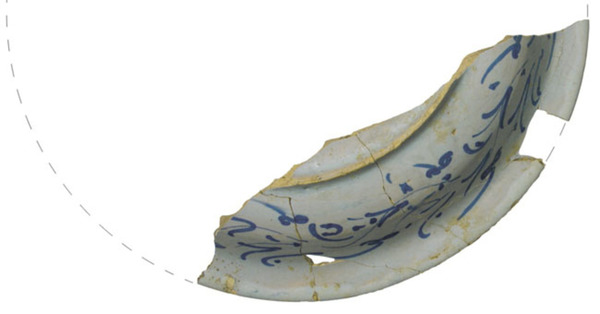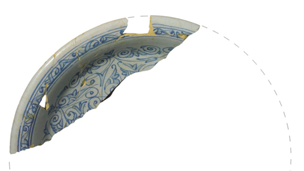 | 5c | zowel op voor- als achterzijde een aan 16de -eeuws Chinees porselein ontleende ranken decoratie (alla porcellana) blauw |