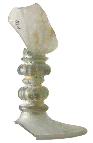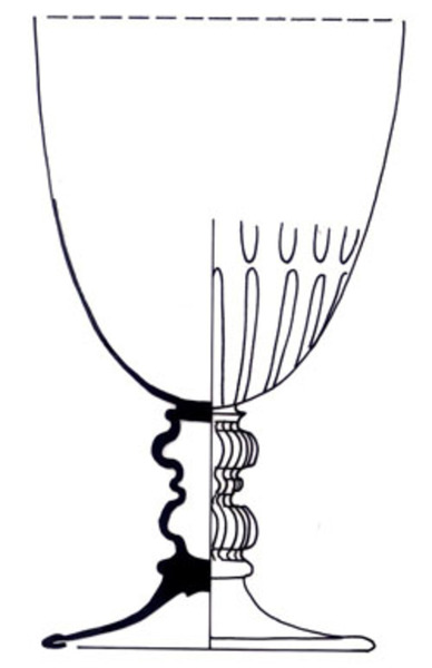 | 4b vorm | diep paraboolvormig kelkglas met verticale ribben, dubbel geribde nodusstam met dikke schijven, schijfvormige voet met pontilmerk |