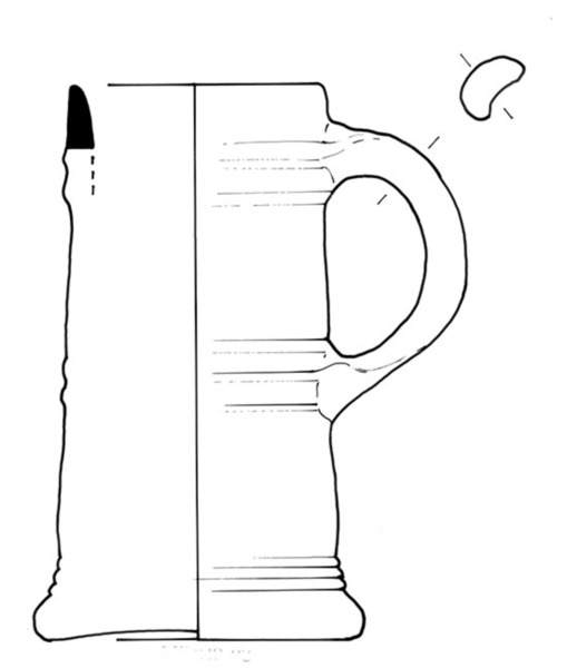 | 4b vorm | cilindrische beker met geprofileerde banden bij ooraanzetten, standvoet |