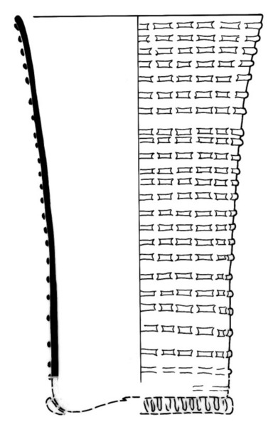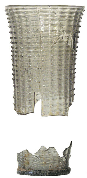 | 4b | cilindrische of licht conische beker met wafelpatroon, uitstaande lip, opgestoken bodem met pontilmerk, voetring |