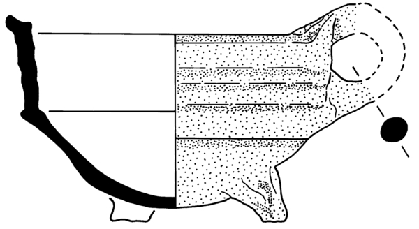 | 4b | vierkante vuurtest met scherpe knik bodem-wand en rand met aan bovenzijde een geultje, poten |