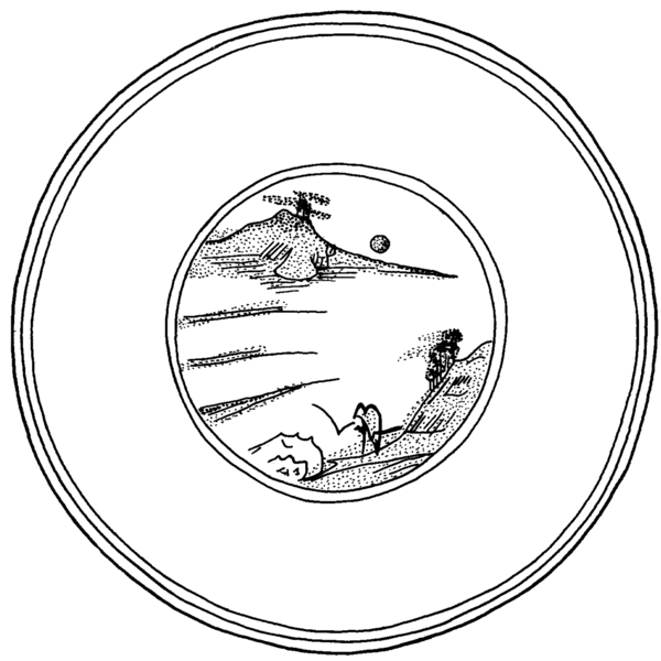 | 5c | inwendig: blauwop wit: Chinees landschap (eenvoudige beschildering) onderglazuur blauw |