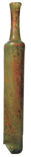 | 4b | lange, smalle cilindrische of licht conische fles, met lange rechte of conische hals, opgestoken bodem of standvlak met pontilmerk |