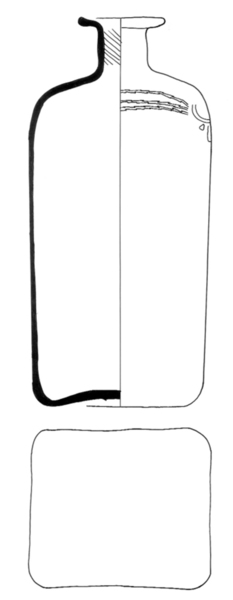 | 4b | hoge vierzijdige fles, groter dan 13 cm, met korte hals, standvlak op licht opgestoken bodem met pontilmerk |