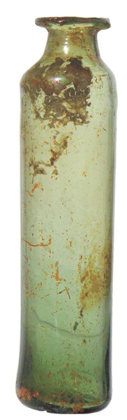 | 4b | lange, smalle cilindrische fles met korte rechte of conische hals en horizontale lip, opgestoken bodem of standvlak met pontilmerk |