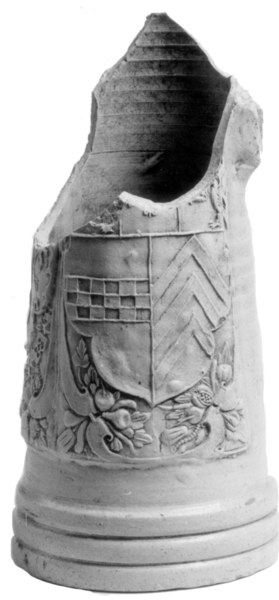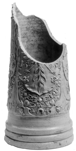 | 5c decoratie | drie appliques met wapenschilden: het wapen van Spanje (Phillips II) met een keten van het Gulden Vlies, het wapen der Habsburgers met de rijksadelaar en een keten van het Gulden Vlies (gedateerd: 1575) en het wapen van het graafschap Jülich-Kleef-Berg (mogelijk H.H. = Hans Hilgers) |