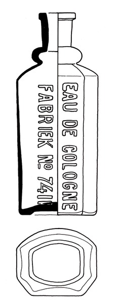 | 4b vorm | zeszijdige parfumfles met één zijde gebogen, cilindrische hals met knoopvormige krop, contactvorm met naden, standring |