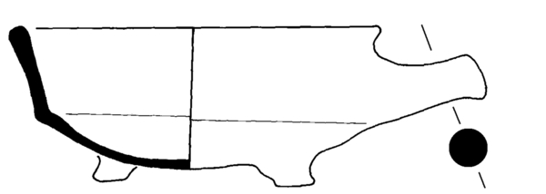 | 4b | vuurtest met ronde bak, scherpe knik bodem-wand, iets uitwijkende wand, poten |