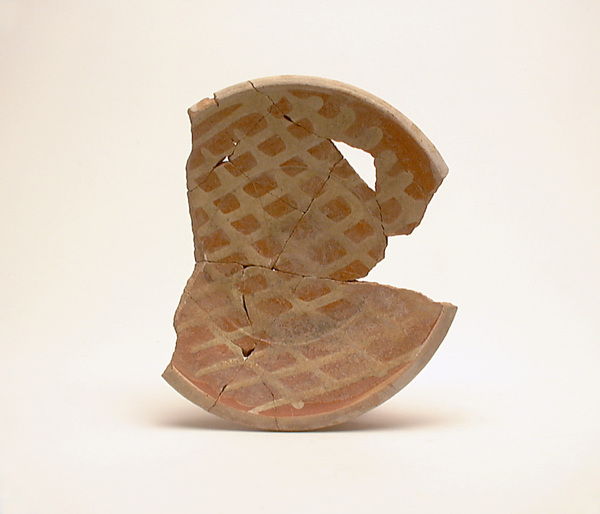 | 5c | spiegel: slibversiering in honingraatpatroon, vlag: concentrische sliblijnen, ongeglazuurd |