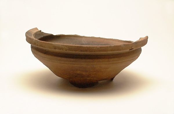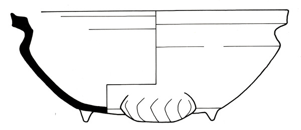 | 4b | bolle kom met ingesnoerde hals en vierkante rand, lobvoeten |