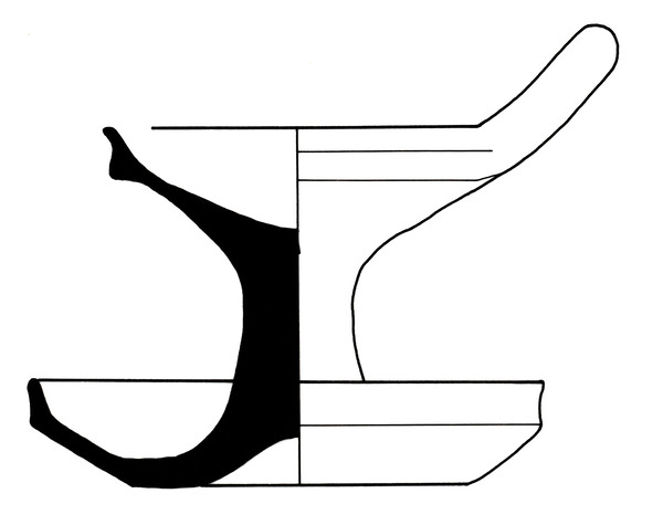 | 4b | olielamp met twee schalen en stam, een worstoor, lekschaal afgeplat, geknikte rand |