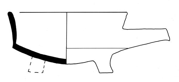 | 4b | vuurtest met ronde bak, scherpe knik bodem-wand, iets uitwijkende wand, poten |