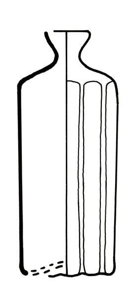 | 4b | kleine cilindrische fles met verticale ribben of cannelures, zonder of met korte hals met uitstaande lip, opgestoken bodem met pontilmerk |