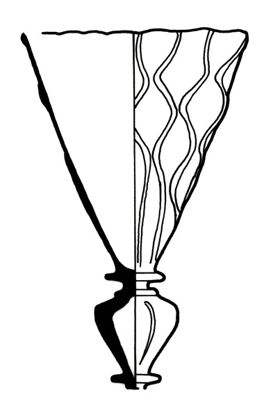 | 4b | trechtervormig kelkglas met of zonder afgeronde bodem, netwerkversiering in reliëf, vierlobbige holle nodus- of balusterstam met één of meer schijfjes, schijfvormige voet met pontilmerk |