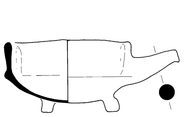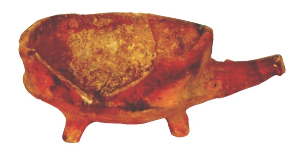 | 4b | vierkante vuurtest met scherpe knik bodem-wand en iets uitwijkende wand, afgeronde rand, poten |