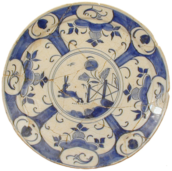 | 5c | stylistische imitatie van Chinese motieven, haas en hekwerk blauw |