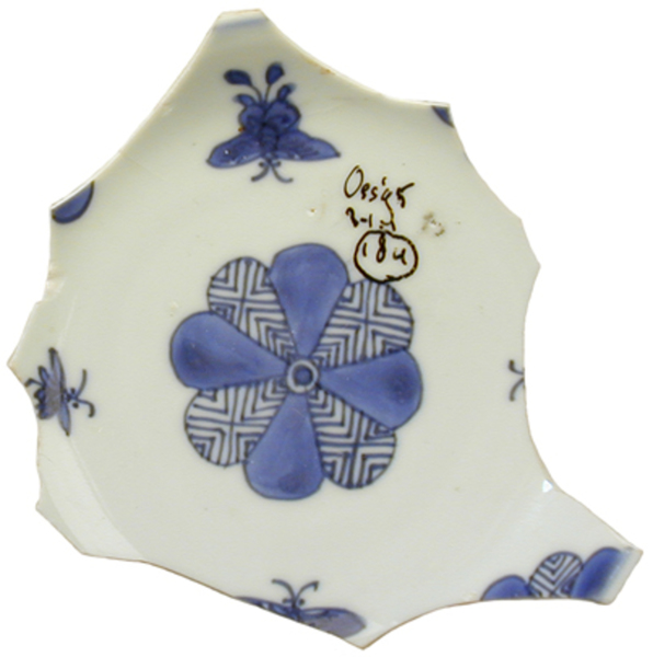 | 5c | vlag: Chinese motieven, spiegel: rozet; Chinese motieven onderglazuur blauw |