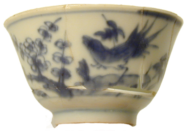 | 5c decoratie | spiegel: bloem, Chinese motieven onderglazuur blauw |