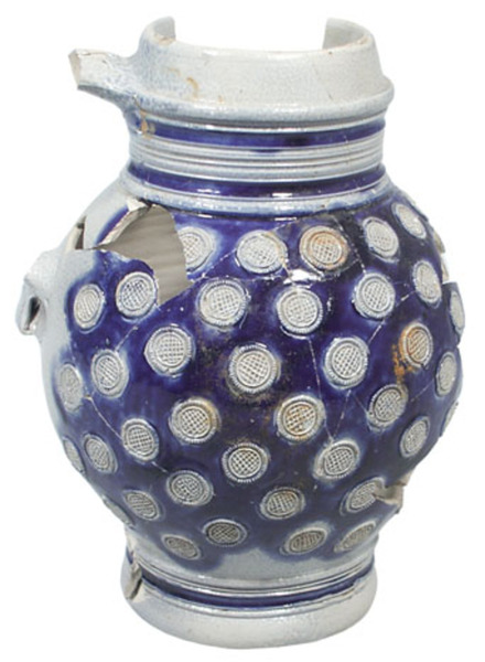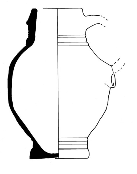 | 4b | zeer bolle kan met wijde hals met kraagrand, ribbel op halsaanzet, standvoet |
