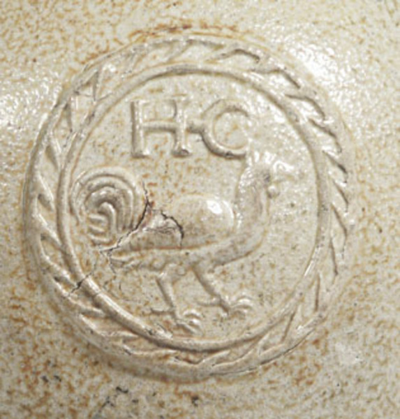 | 5c decoratie | applique met naar rechts kijkende haan; HC (Henry Crosse) staart bij ooraanzet |