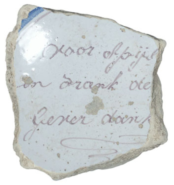 | 5c | spiegel: tekst in paars: VOOR SPIJS EN DRANK DE GEVER DANK inwendig: blauw en paars |